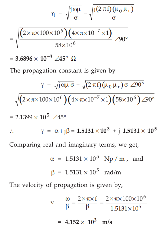 For conducting medium, σ = 58 MS/m. So using expressions of η, ɤ and v for good