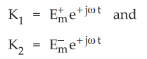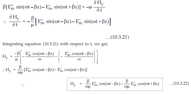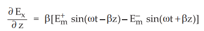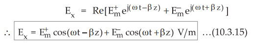• Above equation (10.3.15) is the sinusoidal function consisting two components of an electric field; one in forward direction and other in backward direction. The wave thus consists one component of the field travelling in positive z-direction having amplitude E+m; while other component of the field travelling in negative z-direction having amplitude E-m.