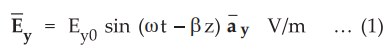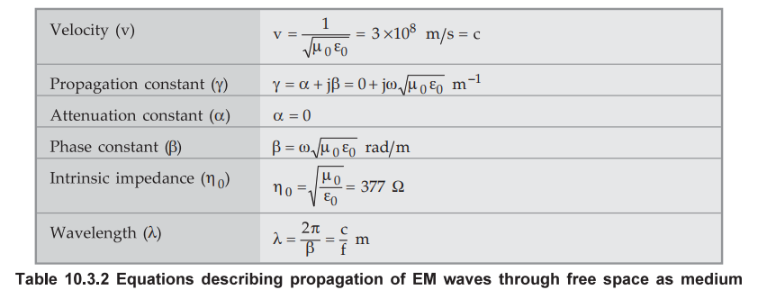 • Consider an electromagnetic wave propagating through the free space. For free space, σ = 0. Consider that the electric field in the wave is in x-direction only while the magnetic field is in y-direction only.