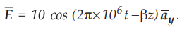 by Ex(z,t) = 10cos(2π × l07t - 0.1 πz) V/m. What is the