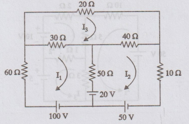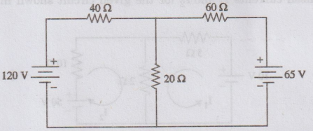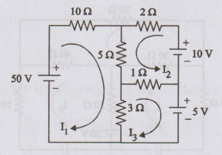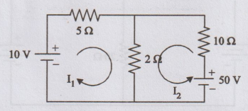 Determine mesh currents I1 and I2 for the given circuit shown in figure.
