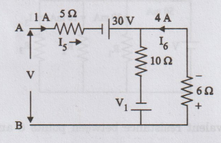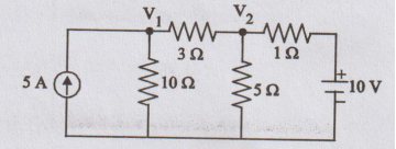 I10 Ω = 5A, V1 = 74V, V = 149 V]