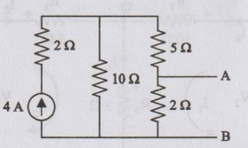 Determine the current in the 10 2 resistance and find voltage across A and B in