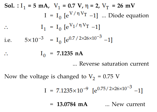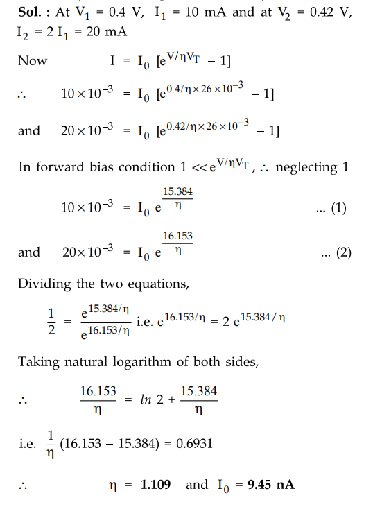Calculate the value of reverse leakage current and ʼn for the diode. Sol. At V1
