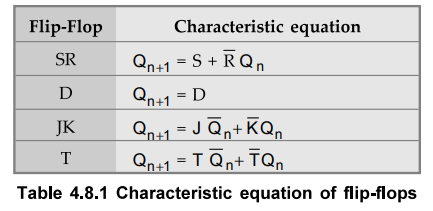 The characteristic equations for various flip-flops are summarized in Table