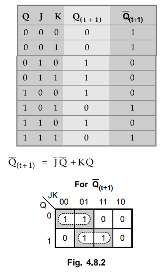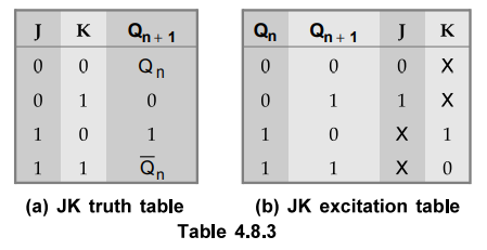 The truth table and excitation table for JK flip-flop are shown in Table 4.8.3