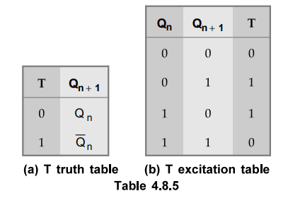 Table 4.8.5 (a) and (b) show the truth table and the excitation table for T
