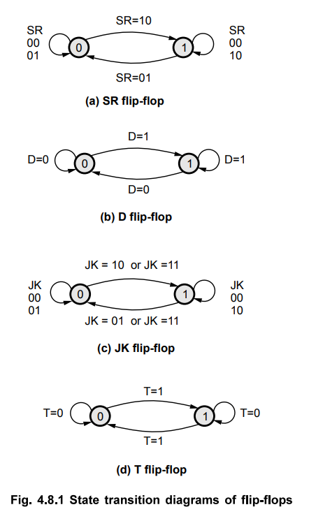 The Fig. 4.8.1 shows the state transition diagram for all flip-flops. Here, the