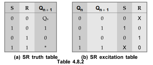 Table 4.8.2 (a) and (b) show the truth table and excitation tables for SR