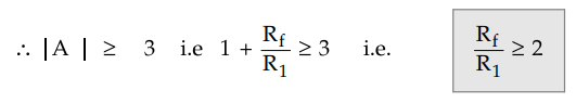 To satisfy Barkhausen criterion that Aβ ≥ 1 it is necessary that the gain of the noninverting op-amp amplifier must be minimum 3.