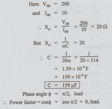 expression for the leading current is given by i = 10 cos 314 t. Find the