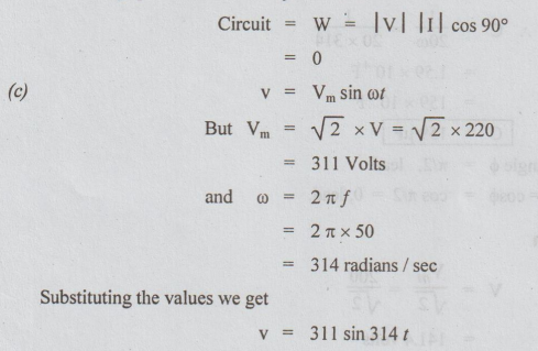 6 In an A.C circuit, the applied voltage is given by v = 200 sin 314t and the