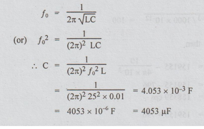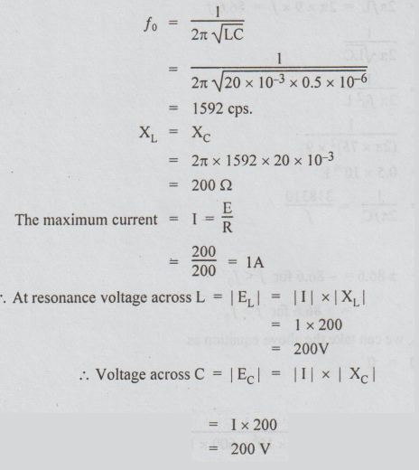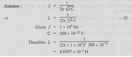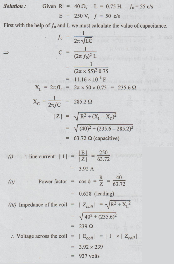 for which the resonant frequency is 55 c/s. If the supply is 250V, 50 c/s find