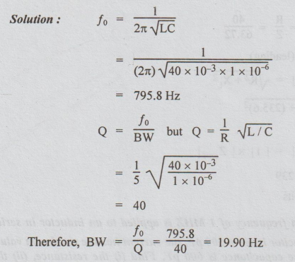 4 What is the resonant frequency and Bandwidth of a series RLC circuit given R