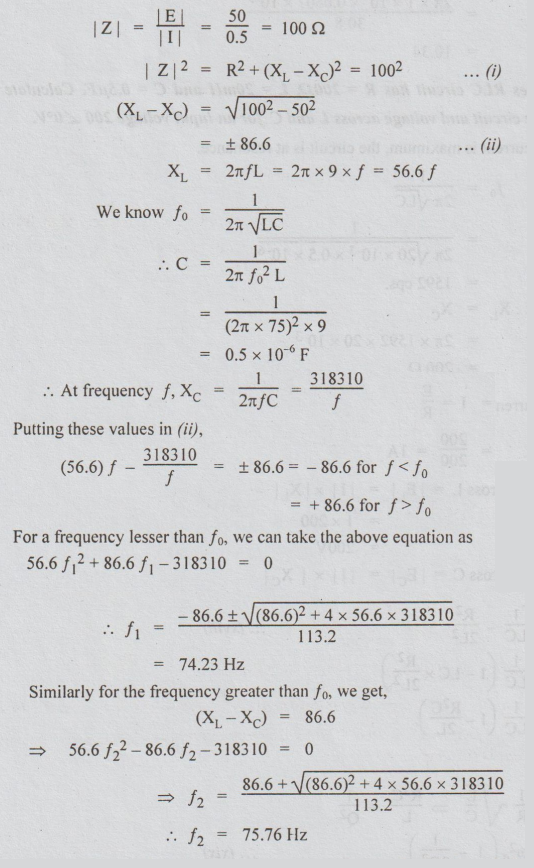 9 A series circuit with R = 50 2; L = 0.05H and C = 20 micro farads has an