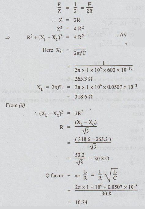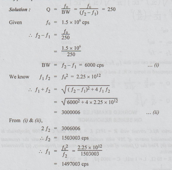 Electric Circuit Analysis: Unit V: Resonance and coupled circuits : Tag: : - Worked examples on series resonance