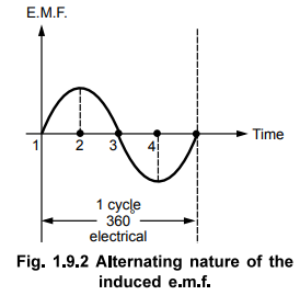alternating nature of the induced e.m.f. as shown in the Fig. 1.9.2.