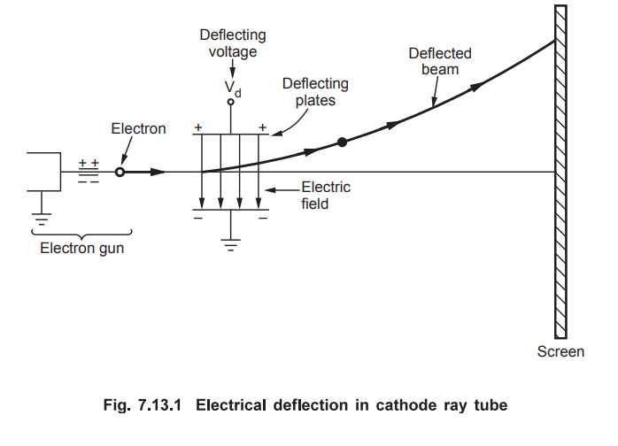 is used. This is called electrical deflection. While on its way to the screen,