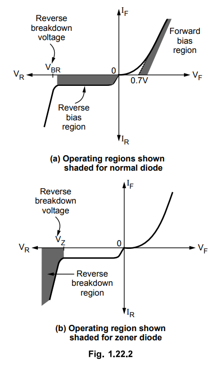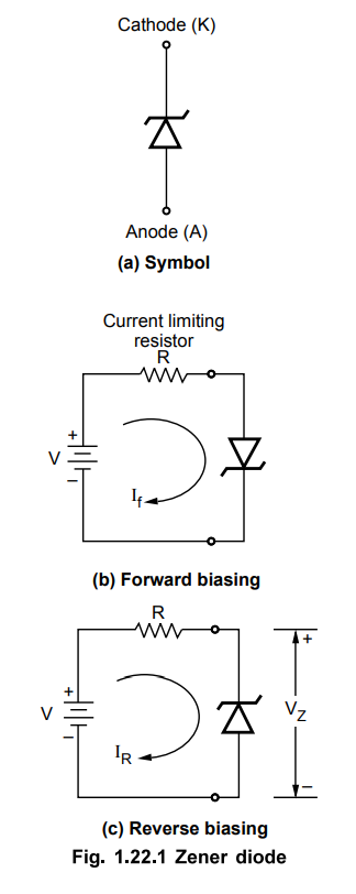 This is shown in the Fig. 1.22.1 (b) and (c). Practically zener diodes are