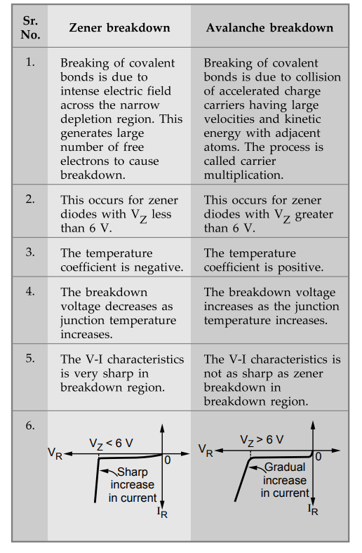 voltages less than 6 V while avalanche breakdown is observed in the zener