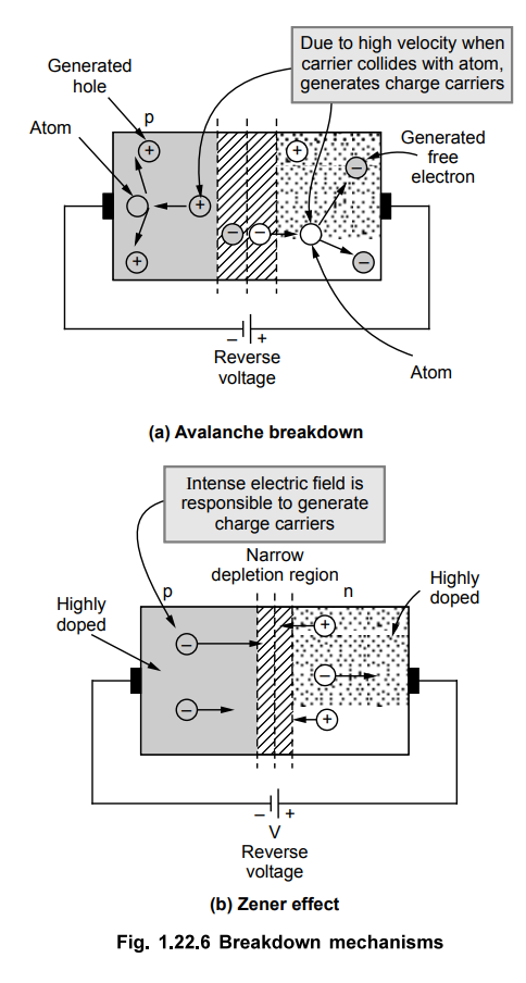 There are two distinct mechanisms due to which breakdown may occur in the zener